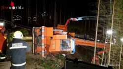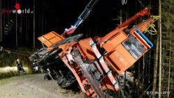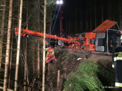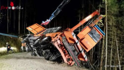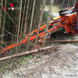 Oö: Seilkran-Lkw beim Umstellen auf einer Forststraße in Molln umgestürzt