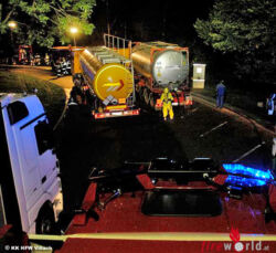 Glücklicherweise stand der Lkw auf einem Parkplatz und es traten nur geringe Menge des Stoffes aus, welcher sofort Aufgefangen und verdünnt wurde.