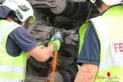 SCHWECHAT (NÖ): Kurz nach Mittag des 15. September 2015 wurden die Freiwilligen Feuerwehren Schwechat und Rannersdorf zu einer schweren Bergung alarmiert. Beim Eintreffen bot sich folgende Lage: Ein mit 28 Tonnen Asche beladener Sattelzug stürzte auf der S1 beim Knoten Schwechat um und blieb auf der Fahrerseite liegen. Der Fahrer wurde nur leicht verletzt.