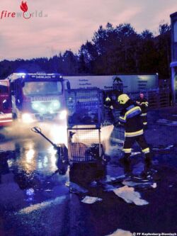 Nach der Ersterkundung und Kontrolle wurde festgestellt, dass durch Schweißarbeiten eine Gitterbox mit Kartons in Brand geraten ist. Die Gitterbox wurde von den Einsatzkräften abgelöscht und mittels Wärmebildkamera kontrolliert.