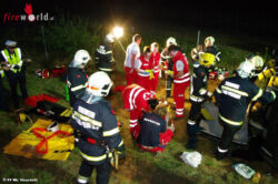 Gegen 21:45 Uhr meldeten "Notruf 144" und Autobahnpolizei der Bezirksalarmzentrale Wiener Neustadt eine eingeklemmte Person nach einem Verkehrsunfall auf der Südautobahn. Ein 70- Jähriger deutscher Staatsbürger kam mit seinem Seat nach einem Auffahrunfall von der Fahrbahn ab. Das Auto überschlug sich mehrmals und landete, auf der Seite liegend, im Straßengraben. Beim Eintreffen der Einsatzkräfte war der Lenker zwar ansprechbar, aber im Fahrzeug eingeschlossen.