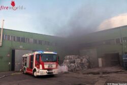 In der Betriebshalle des Abfallbehandlungsbetriebes kam es aus unbekannter Ursache zu einem Brand einer Förderschnecke für Kunststoffmüll. In der Anlage, mit der große Mengen kleiner Kunststoffschnitzel bewegt werden, konnte sich der Brand rasch ausbreiten. Durch die enorme Rauchentwicklung, die der brennende Kunststoff verursachte konnte im Umfeld und im Inneren der Halle nur mit umluftunabhängigem Atemschutz gearbeitet werden. Außerdem hinderten die Plastikberge im inneren der Halle die Bewegungsfreiheit der eingesetzten Trupps.