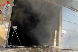 Insgesamt waren 12 Trupps mit Atemschutz im Einsatz. Dies entspricht 36 Mann, die unter schwerer Sichtbehinderung und Hitzeentwicklung den Brand bekämpften. Gefahr für die Anrainer bestand zu keinem Zeitpunkt, da der Rauch rasch nach oben abzog. Um die große Halle rauchfrei zu bekommen, wurde mit mehreren Druckbelüftern gearbeitet und die Lichtkuppeln am Dach geöffnet. Die bessere Sicht begünstigte die Brandbekämpfung enorm.