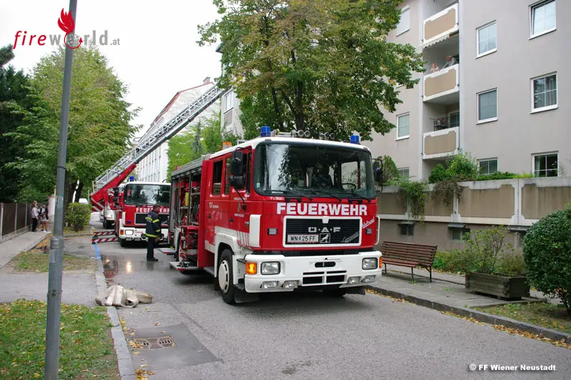 WIENER NEUSTADT (NÖ): Die Serie von Brandeinsätzen in Wiener Neustadt geht weiter. Erneut mussten die Freiwilligen am Samstag, 19. September 2015, mit mehreren Fahrzeugen zu einem Brand in einem Mehrparteienhaus ausrücken! Wieder brannte eine Küche. Von der Feuerwehr wurden zwei Katzen aus der Brandwohnung gerettet.