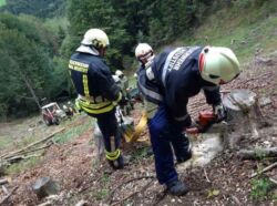 GAFLENZ (OÖ): Nach einem Forstunfall am Donnerstagabend, 17. September 2015, wurde der Kommandant der FF Gaflenz am darauf folgenden Tag ersucht, die Bergung des Traktors zu unterstützen. Aufgrund der Schilderungen wurde beschlossen, die weiteren Schritte nach einem Lokalaugenschein zu setzen.