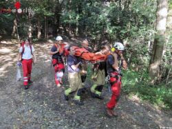 Zwei Mountainbiker, die zufällig in der Nähe unterwegs waren, hörten die Hilferufe. Sie leisteten sofort vorbildliche Erste Hilfe und alarmierten die Einsatzkräfte und wiesen diese auch noch gekonnt ein. Die Höhenrettung übernahm, in Zusammenarbeit mit dem Rettungsdienst, weitere Erste Hilfe Maßnahmensowie den Transport mittels einer Spezialtrage bis zum Rettungsfahrzeug.