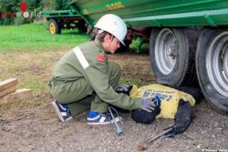 In unregelmäßigen Abständen mussten die zukünftigen Feuerwehrmänner zu den verschiedensten Einsätzen darunter Personenrettung, Brandeinsätzen, Verkehrsunfälle ausrücken und das in der Theorie gelernte in die Praxis umzusetzen. Am Samstag gegen 16.00 Uhr erfolgte ein gemeinsamer Großeinsatz für alle Feuerwehren in Großlobming. Ein Wirtschaftsgebäudebrand mit mehreren verletzten Personen die unter einem Traktor und dessen Anhänger eingeklemmt waren, galt es zu bewältigen.