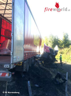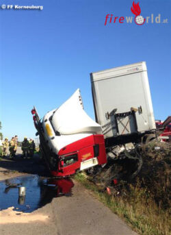 Während der Aufräumarbeiten langte über die ebenfalls anwesende Autobahnpolizei ein weiterer Einsatz ein: „LKW am Knoten Korneuburg überschlagen“ lautete die dramatische erste Information. Nähere Details waren zu diesem Zeitpunkt noch nicht bekannt.