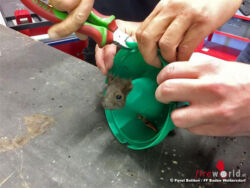 BADEN (NÖ): Ein neugieriges Eichkätzchen hatte sich in einer Plastikschale verfangen und konnte weder vor noch zurück. Mit größter Vorsicht wurde der kleine Patient von seiner unfreiwillig angelegten Halskrause befreit.
