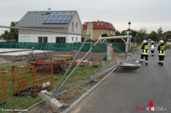 Die Zaunfelder wurden von der Fahrbahn entfernt und auf der Baustelle gesichert abgelegt, sowie die Einsatzstelle mit einem Feuerwehr-Absperrband provisorisch abgesperrt.