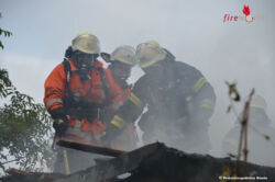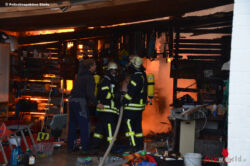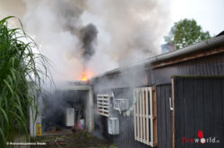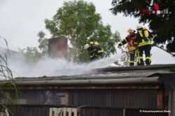 Durch den schnellen Löschangriff konnte ein Übergreifen der Flammen von dem in Vollbrand stehenden Holzanbau auf das nebenstehende Hallengebäude verhindert werden, lediglich im Dachbereich im Übergang mussten die Feuerwehrleute noch die Dachhaut öffnen, um an sämtliche Brandnester heranzukommen. Der als Büro genutzte Holzanbau brannte vollständig aus. Auch ein Heizöltank und das darin befindliche Öl brannte ab, die Zentralheizung im Nebengebäude wurde schwer beschädigt.