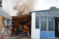 Nach den ersten Ermittlungen an der Brandstelle durch Polizeibeamte aus Horneburg und Tatortermittler der Polizeiinspektion Stade hatte der 56-jährige Besitzer des Geländes gegen 08:00 h sein Büro betreten und die Heizung angestellt. Als er kurze Zeit später wieder in den Raum zurückkehren wollte stand dieser schon in Brand. Er hatte noch versucht mit einem Feuerlöscher das Feuer zu bekämpfen, was aber nicht gelang und dann sofort den Notruf gewählt. Nach ersten Schätzungen von Feuerwehr und Polizei wird der Gesamtschaden auf ca. 50.000 Euro geschätzt.