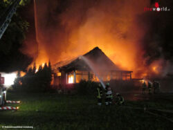 Bei Eintreffen der Wehren stand bereits der gesamte Dachstuhl des Gebäudes in Flammen. Mit rund 100 Kameraden lösche die Feuerwehr über mehrere Stunden, konnte jedoch nicht verhindern, dass das Gebäude zum Schluss im Vollbrand stand. Nach ersten Schätzungen beläuft sich der Schaden auf rund 290.000 Euro. Die Ermittlungen hinsichtlich der Brandursache dauern an. Es gab keine Verletzten bei dem Brand.