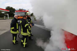 Mit Feuerlöschern machte der Fahrer dem entstehenden Feuer den Garaus, während sich die Alsfelder Feuerwehrleute ihren Weg durch den Stau bahnten. Der Lkw befand sich unglücklicherweise in einem Baustellenbereich, sodass sich die Anfahrt der Feuerwehr erheblich verzögerte. Um die Achse vollständig zu Kühlen, wurde der Sattelzug von Polizei und Feuerwehr auf den Parkplatz der Raststätte Rimberg gelotst. Dort setzte die Feuerwehr den Schnellangriff eines Tanklöschfahrzeugs ein und kühlte die Achse schließlich vollständig ab.