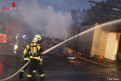 Da sich auch im ehemaligen Stall eine erhebliche Menge an Brennholz befand, stellten sich die Löscharbeiten als schwierig und langwierig dar. Die Florianis standen bis in die späten Nachtstunden im Einsatz.