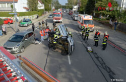 Der 84-jährige Fahrer eines Opel Corsa und seine 83-jährige Ehefrau befanden sich auf der Balanstraße stadtauswärts. Aus nicht geklärter Ursache touchierte der Mann einen am Straßenrand geparkten Pkw am linken Heck. Aufgrund zu starken Gegenlenkens des Fahrers kippte der Opel auf die Fahrerseite. Seine Frau konnte sich noch selbst aus dem havarierten Fahrzeug befreien.