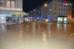 Wien: Transportrohrbruch in Floridsdorf – Berufsfeuerwehr mit 22 Fahrzeugen bei massiver Überflutung im Einsatz