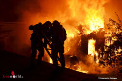 RATINGEN (DEUTSCHLAND): Um kurz nach 20:00 Uhr wurde die Feuerwehr Ratingen am 2. Oktober 2015 zu einem Brand in der Friedrichstraße alarmiert. Bei der Kreisleitstelle gingen mehrere Anrufe ein, die auf ein größeres Brandereignis hindeuteten. Bereits auf der Anfahrt war über dem Stadtteil Tiefenbroich ein großer Rauchpilz und deutlicher Flammenschein auszumachen.