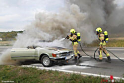 Nö: Brennender Mercedes auf der B 18 bei Leobersdorf