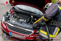 Kurz nach der Alarmierung setzte sich das erste Löschgruppenfahrzeug in Bewegung. Schon während der Anfahrt rüstete sich ein Trupp mit Atemschutz aus, um rasch und effektiv zu helfen. Am Einsatzort angekommen konnte ein rauchendes Fahrzeug vorgefunden werden. Der Gruppenkommandant ließ ein Rohr unter Atemschutz vornehmen.