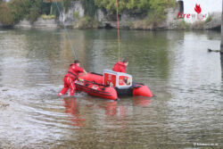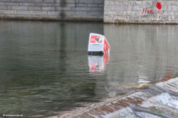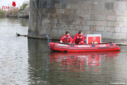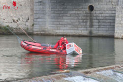Mit Seilen gesichert bargen die Mitglieder der Wasserwehr die Gefriertruhe, welche aus bislang unbekannter Ursache in der Steyr "ihre Bahnen zog" und Richtung Enns trieb. Zahlreiche Leute beobachteten diesen spektakulären Bergungseinsatz der Feuerwehr, die unter anderen mittels Wasserfahrzeug zum Einsatz ausrückte.