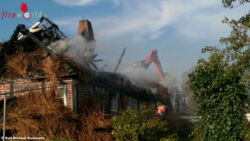 Deutschland: 11 Feuerwehren bekämpfen Brand an brennendem Reetdach-Haus in Duvensee