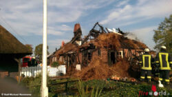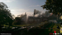Rund 130 Einsatzkräfte aus elf Wehren versuchten, unter anderem durch den Einsatz von Löschschaum eine Ausbreitung des Feuers zu verhindern. Sie konnten jedoch letztlich nicht verhindern, dass das Dach des reetgedeckten Hauses einstürzte und man somit von einem Totalschaden ausgehen muss. Mit Hilfe eines privaten Baggers wurden die letzten Brandnester abgelöscht.