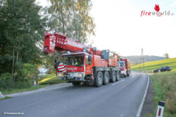 Die Feuerwehren Steinbach an der Steyr, Grünburg und Micheldorf mit dem Kranfahrzeug waren anschließend im Einsatz, um den Bagger aus dem unwegsamen Gelände wegzubringen.