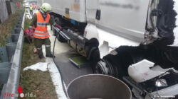 Oö: Öleinsatz nach Unfall mit zwei Lkw auf der A1 bei Seewalchen