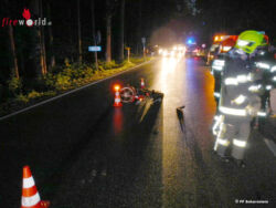 SCHARNSTEIN (OÖ): Am Montagfrüh, 05.10.2015 wurde die Feuerwehr Scharnstein um 06:12 Uhr zu einem Verkehrsunfall (Aufräumungsarbeiten) auf die L549 Almseestraße, Kreuzung Traxenbichl alarmiert. Aus unbekannter Ursache kollidierte ein Pkw mit einem Moped, wobei der Mopedlenker zu Sturz kam.