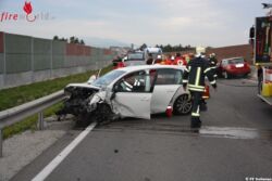 SOLLENAU (NÖ): Zu einem schweren Verkehrsunfall wurden die Mitglieder der Feuerwehr Sollenau am Sonntagnachmittag, den 4. Oktober 2015 um 16.39 Uhr gerufen. Beim Eintreffen am Unfallort wurde klar, dass es sich um fünf Beteiligte und mehr oder weniger schwer beschädigte Fahrzeuge handelte.