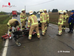 Der Lenker des Fahrzeuges konnte sich aus eigener Kraft aus dem Fahrzeug befreien und wurde die durch ein Wunder nur leicht verletzt. In weiterer Folge wurde die Freiwillige Feuerwehr Prottes um 10.59 Uhr mittels SMS- Alarmierung zu einer Fahrzeugbergung (T1) auf die L19 Richtung Matzen alarmiert.