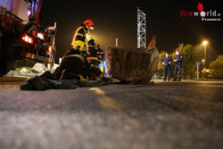Oö: Feuerwehr räumt in Marchtrenk dicken Stein von der Fahrbahn