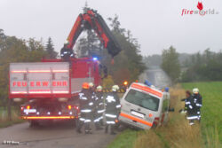HORN (NÖ): Am Mittwoch, den 7. Oktober 2015, wurde die Feuerwehr Horn um 15:22 Uhr zur Bergung eines Fahrzeuges vom Roten Kreuz im Bereich einer Unterführung der Umfahrung Horn alarmiert. Nach einem Ausweichmanöver rutschte der Krankentransportwagen in den Straßengraben und drohte umzustürzen.