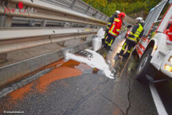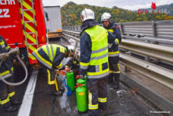 GLOGGNITZ (NÖ): Gegen 16.00 Uhr wurde die Feuerwehr Gloggnitz Stadt am Donnerstagnachmittag, 8. Oktober 2015, zu einer Lkw Bergung mit Schadstoffaustritt auf die Semmering Schnellstrasse (S6) Richtung Steiermark alarmiert.
