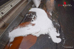 Mittels Bioversalmittel und Ölbindemittel wurde die Ölspur von den Florianis gebunden. Um einen Eintritt ins Kanalsystem zu verhindern, wurde bei den befindlichen Abwassergittern eine Sperre mittels Ölbindemittel aufgebracht. Da aufgrund der regennassen Fahrbahn in Verbindung des Motoröles die Fahrbahn teilweise Spiegelglatt war, wurde vom Einsatzleiter des Strassenerhalters ASFINAG eine Spezial Hochdruckreinigungsmaschine angefordert, welche die beiden Fahrspuren säubert.