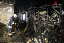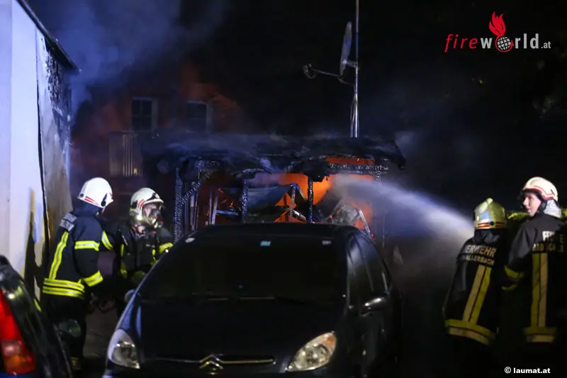 "Wir haben einen Schuppen und eine Lagerhalle in Vollbrand vorgefunden. Wir haben nicht genau gewusst was drinnen ist. Wir haben dann von einem Anrainer die Meldung bekommen, dass noch Personen im Haus sind. Es sind dann von uns zwei Atemschutztrupps von der Feuerwehr Bad Schallerbach in das Haus. Wir haben dann diese Leute im Schlaf in der verrauchten Wohnung vorgefunden und konnten dadurch auch das Leben dieser Leute retten. Die Brandbekämpfung war insofern schwierig, weil nämlich eine Propangasflasche im Brandobjekt war. Diese Gasflasche wurde von uns dann gesucht und war auch schon leckgeschlagen. Wir haben sie dann unter dem Schutt herausgeholt und gekühlt," schildert Bruno Roithmeier, Einsatzleiter der Feuerwehr Bad Schallerbach.