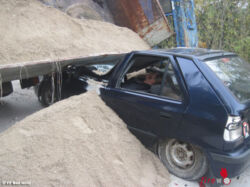 Dort angelangt wurde ein umgekippter LKW, welcher auf ein Auto gestürzt war, vorgefunden. Eine Person war im Auto eingeklemmt, der zweite Lenker lag bewusstlos in seinem Lastkraftwagen.