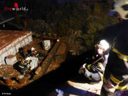 Ein Lastkahn hatte sich aus unbekannter Ursache gelöst und war im Hafenbecken gegen den Steinwurf und die Kaimauer getrieben. Großes Glück hatte die Feuerwehr dabei selbst! Das A-Boot ist nur wenige Meter entfernt am Feuerwehrsteg festgemacht.