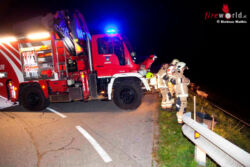 Daraufhin ist er links auf die Böschung und ca. 90 Meter einen sehr steilen Abhang hinuntergerattert. Er ist dabei über eine Straße und einen Güterweg geschanzt, streifte einen Baum und blieb vor dem Wald stehen. Der Lenker konnte unverletzt aussteigen und die Hilfe der Feuerwehr Viktorsberg anfordern. Diese holte die Wehr aus Rankweil mit dem Schweren Rüstfahrzeug inkl. Seilwinde zur schonenden Bergung des Autos. Der junge Mann blieb unverletzt und war nicht alkololisiert. Sein Wagen hat nur noch Schrottwert, die Musikanlage im Auto konnte „gerettet“ werden.