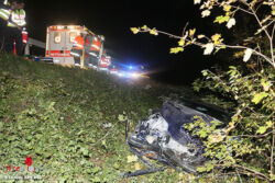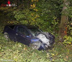 PIDING (BAYERN): Am Samstagabend, 10. Oktober 2015, gegen 20.50 Uhr ist ein in Richtung Freilassing fahrerender 18-jähriger Fahranfänger aus Bad Reichenhall mit seinem Opel Tigra zwischen dem Pidinger und Hammerauer Berg nach rechts von der B20 abgekommen und über die Böschung hinab frontal gegen einen Baum geprallt.