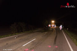 Da zu diesem Zeitpunkt noch nicht ausgeschlossen werden konnte, dass drei weitere Pferde sich ebenfalls außerhalb der nahegelegen Koppel befinden wurden diese zusammen mit der inzwischen eingetroffenen Besitzerin gesucht und in die Stallungen verbracht. Anschließend half die Feuerwehr bei der Bergung des verstorbenen Tieres. Für den Zeitraum der Bergung und Unfallaufnahme musste die Kreisstraße voll gesperrt werden. Die Fahrbahn wurde im Anschluss noch mit ausreichend Wasser gereinigt. Die Feuerwehr Bruchsal war unter der Leitung des stellv. Feuerwehrkommandanten Thomas Zöller bis kurz nach 4:30 Uhr im Einsatz.