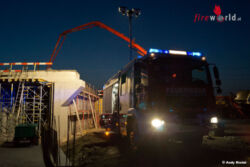Aus bisher nicht näher bekannten Umständen waren auf einer Baustelle im Nahbereich der Pottendorfer-Linie etliche Kubikmeter Beton ausgeflossen. Zur Unterstützung der Mitarbeiter leuchteten die Kräfte der Feuerwehr Hennersdorf die Einsatzstelle mittels Lichtmast und einigen Flutern aus.
