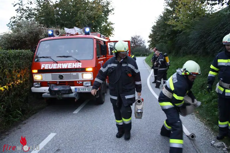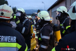Die Kameraden der FF Schamberg, mit ihrem Kommandanten HBI Wolfgang Fellner, waren für die Wasserversorgung zuständig und bauten die Zubringleitung zum TLF Freidorf unter Zuhilfenahme ihrer mitgebrachten Tragkraftspritze. Sie stellten auch den 2. Atemschutztrupp.