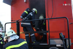 Bei der Übungsschlussbesprechung verwies der Bahnhofsvorstand der GKB, Robert Fink, auf die besondere Rücksichtsnahme des Selbstschutzes bei solchen Einsätzen. Die Züge fahren teilweise bis zu 80 km/h schnell in unserem Bezirk.