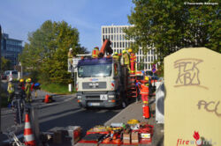 Die Einsatzkräfte erreichten kurz nach der Alarmierung die Unfallstelle. Nach ersten Sicherungsarbeiten und medizinischen Maßnahmen konnte der Mann unter Zuhilfenahme einer speziellen Rettungsplattform, einer besonderen Krankentrage und der Drehleiter aus dem Presswerk gerettet werden. Anschließend wurde der Patient zur weiteren Versorgung an den Rettungsdienst übergeben und unter ärztlicher Begleitung in eine Unfallklinik transportiert.