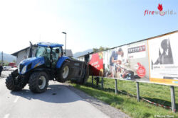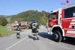 WIESENFELD (NÖ): Am 12.10.2015 um 11:10 Uhr wurde die Feuerwehr Wiesenfeld zu einem Verkehrsunfall „umgestürzter Traktor mit Tiertransport“ alarmiert. Der Unfall ereignetet sich direkt vor dem Feuerwehrhaus an der Kreuzung B18 – Schwarzenbachstraße.