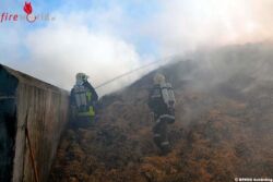 Die Maschine konnte gerade noch rechtzeitig aus dem Gefahrenbereich gefahren werden und der Brand wurde in diesem Bereich mit Feuerlöschern gelöscht. Der große Strohhaufen jedoch stand in Brand bzw. gloste stark. Besonders gefährlich war die Hochspannungsleitung des Kraftwerks Ingling, welche direkt über dem brennenden Strohhaufen verlief.