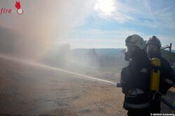 20 Atemschutzträger mussten eingesetzt werden, weil das Brandgut – nachdem es mittels eines Radladers auf der Wiese verteilt wurde – abgelöscht werden musste. Zuvor wurde von einem Löschteich eine 540 Meter lange Zubringleitung gelegt und wegen des hohen Verbrauchs an Atemluftflaschen wurde das Atemschutzfahrzeug alarmiert.