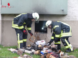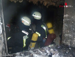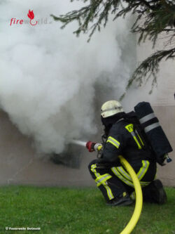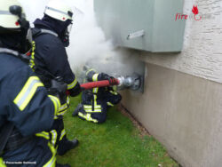 Später wurde hierbei zusätzlich Schaum eingesetzt, um das Brandgut effektiver ablöschen zu können. Parallel dazu verschaffte sich ein Atemschutztrupp mit Hilfe einer Brechstange Zutritt zum Keller, um einen Innenangriff durchzuführen. Insgesamt waren fünf Trupps unter Atemschutz eingesetzt, um das Feuer unter Kontrolle zu bringen.